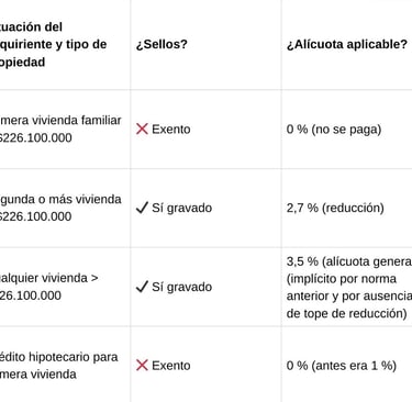 El Impuesto de Sellos sobre créditos hipotecarios destinados a vivienda única queda eliminado, pasando de una alícuota del 1 % a 0 % en 2026.